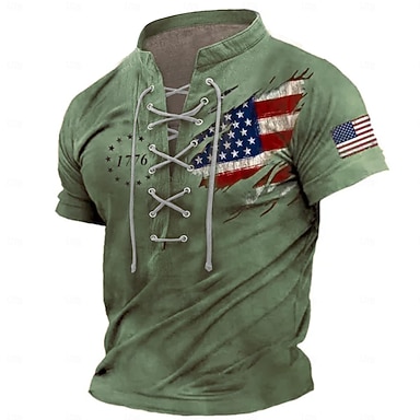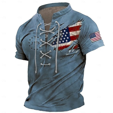 4 luglio 2026 250° Per uomo Bandiera Americana Polo Manica Corta Magliette polo Bavero Casual Athleisure Stampa 3D Bottoni Estate Blu