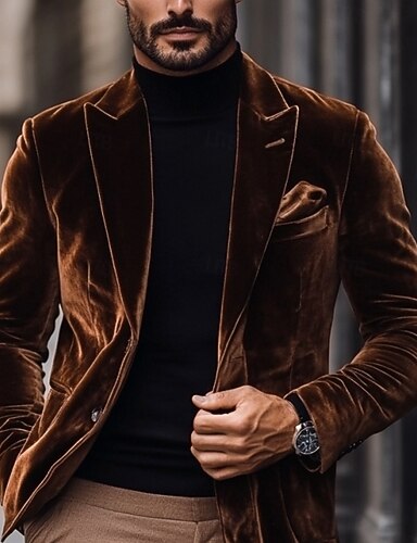 Per uomo Blazer di velluto Collare di chiusura Vintage Moda Casual Tinta unita Blazer Marrone Vestibilità su misura Monopetto Due Bottoni