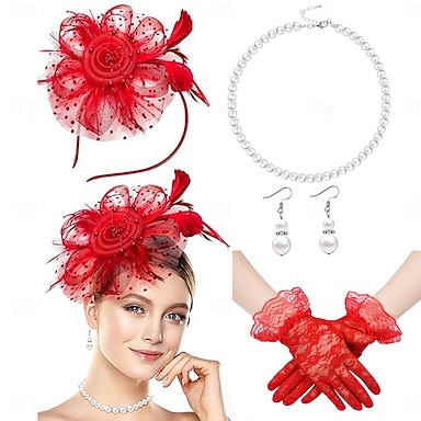 Guanti Collana affascinante Gentildonna Floreale Costume Per donna Mascherata Tè Ascot Festival delle corse di cavalli Adulti Copricapo Guanti Orecchini Tutte le stagioni