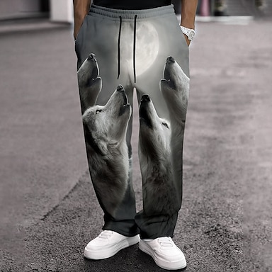 Per uomo Pantaloni da tuta Joggers Stampa 3D Lupo Lunghezza intera All'aperto Feste Quotidiano Elegante Casual Bianco Micro-elastico