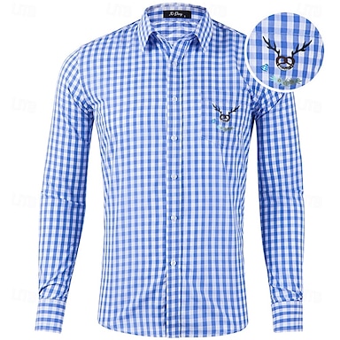 Oktoberfest Quadri Camicia in pelle di daino Pretzel Stampa di cervo Bavarese Tedesco Prati Per uomo Carnevale Festa della birra Panno in stile tradizionale Camicia