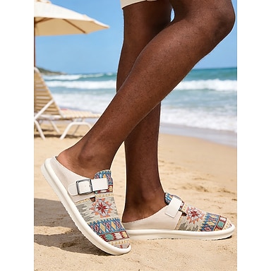 mocassini slip-on da uomo in tela bianca con cinturino regolabile, traspiranti e leggeri, ideali per le vacanze al mare, i viaggi e le uscite informali