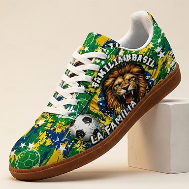 Scarpe da ginnastica casual da uomo con stampa del leone brasiliano, allacciate, leggere e comode, ideali per camminare, perfette per i tifosi di calcio, per le partite dei Mondiali, gli eventi sportivi, i viaggi e l'uso quotidiano.