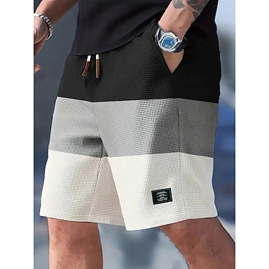 Per uomo Pantaloncini Waffle Shorts Pantaloncini casual Tasca Elastico in vita Semplice Comodità Traspirante Lunghezza al ginocchio Casuale All'aperto Spiaggia Vacanza Moda Nero Bianco Inelastico