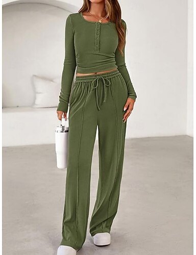 Per donna Set da due pezzi Set di Pantaloni Bolero Top Manica Lunga Girocollo Semplice Elegante Moda Streetwear Casuale Quotidiano All'aperto Nero Rosa Verde militare Primavera Vestibilità regolare