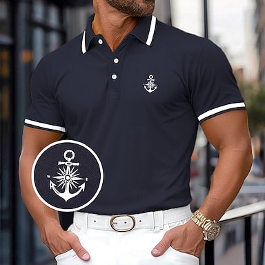 Per uomo Testurizzato Maglia da golf Affari Attivo Classico Manica Corta Moda Moderno Tinta unica Bottoni Estate Primavera Vestibilità regolare Blu Nero Bianco Cachi Grigio Testurizzato