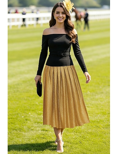 Per donna Abito da smoking Tubino Colonna Formale Crepe Elasticizzato Elegante Manica Lunga Lunghezza Tè Risvolto a punta