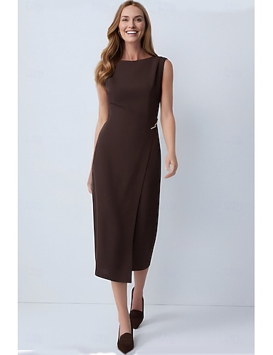 Linea ad A Lunghezza alla caviglia Abiti da Cocktail Abiti da festa Elegante Vintage Senza Maniche Girocollo Formale Tasca Raso con Arricciato Tasca