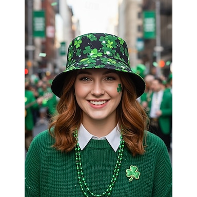 cappello da pescatore con stampa di trifoglio verde da donna: divertente ed elegante per il giorno di San Patrizio, le feste e l'abbigliamento casual