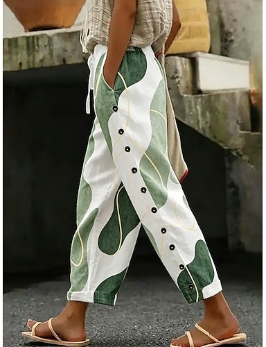 Per donna Finto cotone e lino Pantaloni Pantaloni casual Pantaloni Estivi Vacanza Moda Essenziale Lunghezza alla caviglia Misura del girovita medio Grafico Geometrico Astratto Tasche Laterali Stampato
