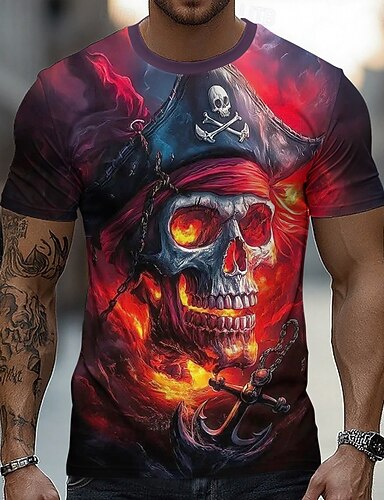 Per uomo Teschio Maglietta Manica Corta maglietta Stampa 3D Girocollo Camicia Gotico Orrore Feste Streetwear Casuale Blu lago Giallo Rosso Estate Primavera Tutte le stagioni Abbigliamento S M L XL