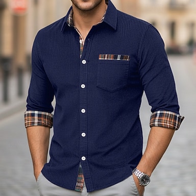 Per uomo Camicia Camicia casual Camicia di Velluto a Coste Camicia con Bottoni Nero Blu marino Marrone Verde Kaki Manica Lunga Plaid Colletto Casuale Quotidiano Patchwork Abbigliamento Moda Moderno