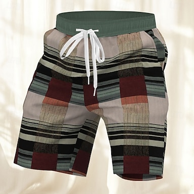 Per uomo Shorts Shorts di Lino Pantaloncini Estivi Shorts da Spiaggia Coulisse Elastico in vita Stampato Geometrico Comodità Traspirante Lunghezza al ginocchio All'aperto Casuale Quotidiano Vacanza