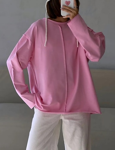 T-shirt da donna 100% cotone patchwork stilosa casual maniche lunghe scollo rotondo tops regolari quotidiani uscita nero bianco rosa estate primavera