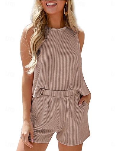 Per donna Set da due pezzi Gilet Camis Senza Maniche Girocollo Semplice Moda Streetwear Casuale Quotidiano All'aperto Verde chiaro Rosa Rosa scuro Estate Vestibilità regolare