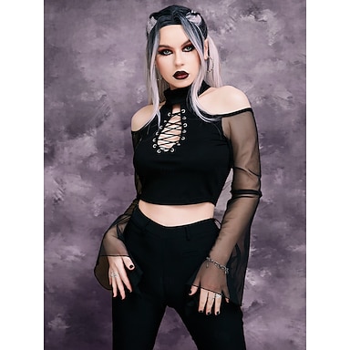 Gotico Crop Top Manica a Campana Strega Costume Per donna Fantasia Halloween Carnevale Performance Feste Adulti Top