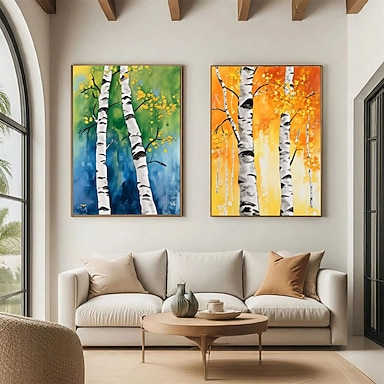 pittura a olio fatta a mano, decorazione della foresta di betulle, pittura a olio astratta, pittura a olio originale fatta a mano, trama spessa, pittura a coltello, regalo di Natale, set di pittura a