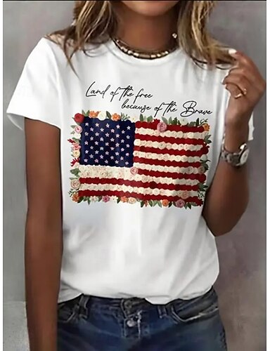 Giorno dell'Indipendenza Americana Per donna Maglietta Bandiera Moda Elegante Classico Manica Corta Girocollo Top Regolari Quotidiano Uscire Weekend Blu Nero Bianco Estate Primavera