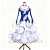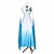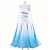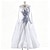 Abito da ballo liscio americano da donna per competizioni, con sfumature di bianco e blu, applicazioni floreali con strass e maniche a sbuffo.