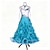 Abito da gara da donna per ballo liscio americano, con sfumature di bianco e blu e strass, maniche a sbuffo arricciate.