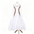 Abito da gara da donna per ballo liscio americano, bianco, con scollo all'americana incrociato e maniche a sbuffo decorate con strass.
