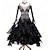 Abito da gara da donna per ballo liscio americano, nero, con pannello trasparente in strass e volant.