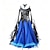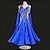Abito da gara da donna per ballo liscio americano, blu royal, con strass e maniche lunghe arricciate, ideale per esibizioni.