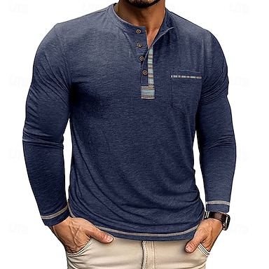 Per uomo Maglietta Maglia Henley Manica Lunga Henley Estate Primavera Tinta unica Streetwear Elegante Casual Tasche Bottoni Casuale Quotidiano All'aperto Verde Blu chiaro Blu marino scuro Maglietta
