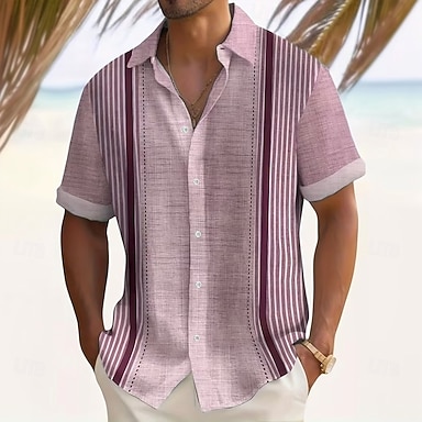 Per uomo A righe Motivo Geometrico Camicia Camicia con Bottoni Manica Corta Moda Casual Quotidiano All'aperto Vacanza Estate Primavera Collo ripiegato Stampa 3D Camicia tipo lino Blu Verde acqua Rosa