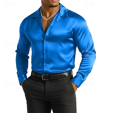 Per uomo Camicia Camicia in raso Camicia elegante Camicia con Bottoni Camicia da Ballo Tinta unica Balli di fine anno Matrimonio Nero Rosso Blu Verde Manica Lunga Collo ripiegato Tutte le stagioni