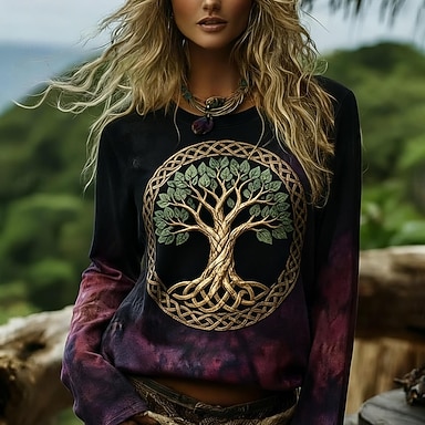 Per donna Camicia Boho Maglietta Stampato Grafico Bohemien Vintage Casual Manica Lunga Girocollo Top Regolari Quotidiano Weekend Abbigliamento da vacanza Verde Estate Primavera Autunno