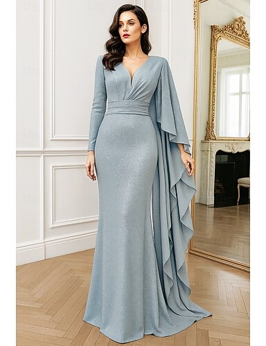Tubino Colonna Lunghezza al pavimento Abito da Sera Abito da ballo con sopragonna Abito formale Elegante Scintillante Brillanti Manica Lunga Scollo a V Matrimonio Formale Mantelle Tessuto Lurex con