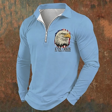 4 luglio 2026 250° Per uomo Bandiera Americana Veterani Polo Maglia da golf Manica Lunga Magliette polo Camicie con Colletto Casual Abbigliamento casual alla moda Abbigliamento da festa Abiti da festa