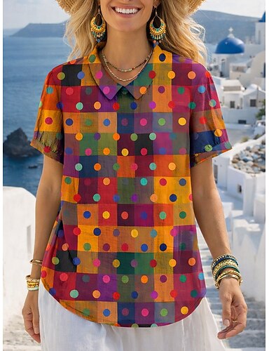 Per donna Camicia Blusa Patchwork Bottoni Stampato Grafico Geometrico Plaid Vintage Tropicale Quotidiano Manica Lunga Colletto a Camicia Top Regolari Quotidiano Marrone Estate Primavera