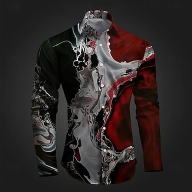 Per uomo Marmo Arte liquida astratta Camicia Camicia con Bottoni Camicia casual Manica Lunga Scuro Vacanza Quotidiano Abbigliamento casual alla moda Estate Primavera Collo ripiegato Stampa 3D camicie