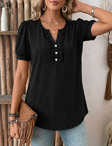 Per donna Top estivi Bottoni Elegante Classico Manica Corta Scollo a V Top Regolari Casuale Quotidiano Uscire Nero Bianco Rosa Vino Blu marino Estate Primavera