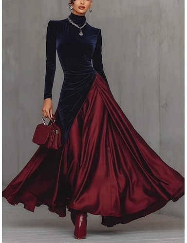 Per donna Abito maxi Abito in Raso Vestito da Festa Vestito a ruota Elegante Moda Moderno All'aperto Vacanza Uscire Vestibilità regolare Blocco di colori Manica Lunga Collo Alto Rosso Primavera