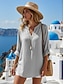 mini abito da donna in finto lino, abito camicia, abito tubino, abito casual, moda, moderno, quotidiano, vacanza, uscite, vestibilità ampia, tinta unita, manica corta, colletto camicia, giallo