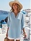 Per donna Camicia Blusa Tinta unica Elegante Classico Moderno Manica Lunga Scollo a V Top Regolari Quotidiano Ferie Uscire Bianco Rosa Verde Grigio chiaro Azzurro Estate Primavera