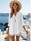 Per donna Abito lungo maxi Finto cotone e lino Abito Camicia Vestito a caftano Abito Bianco Essenziale Moderno Quotidiano Weekend Vestibilità comoda Semplice Mezza Manica Colletto a Camicia Bianco