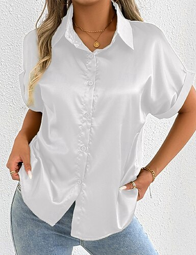 Per donna Camicia Camicia in raso Camicia elegante Camicia con Bottoni Bottoni Tinta unica Semplice Elegante Moda Classico Manica Corta Collo ripiegato Top Regolari Quotidiano Abbigliamento casual