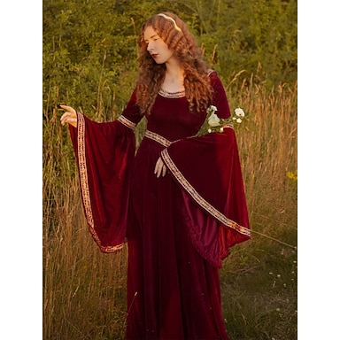 Retrò Vintage Medievale Rinascimento Vestito Strega Vichingo Straniero Streghe Elfico Costume Per donna Ragazze Celtico Reale Notte di Valpurga Halloween Carnevale Mascherata Festa / Sera Bambini