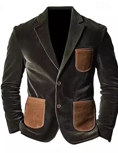 Per uomo Giacca in Velluto a Coste Blazer in velluto a coste Affari Cocktail party Ricevimento di matrimonio Moda Casual Primavera Autunno Poliestere Blocco di colori Tasca Bottoni Confortevole