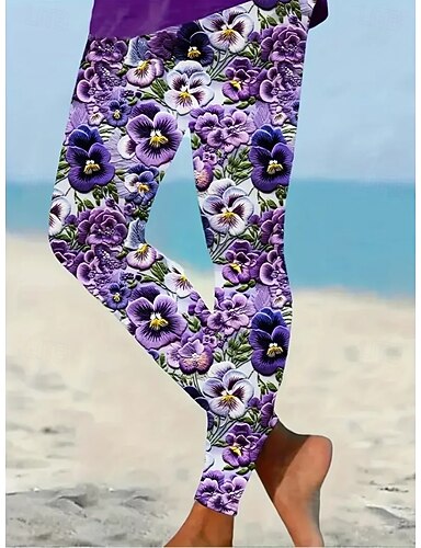 Per donna Leggings Vacanza Vintage Stile Etnico Lunghezza alla caviglia Vita Alta Floreale Grafico Stampa 3D Asciugatura Rapida Traspirabilità Morbido Elasticizzato Quotidiano Casa All'aperto Rosso