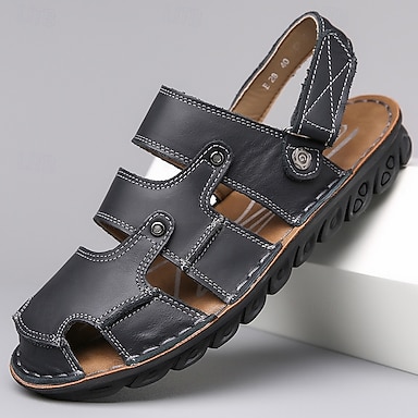 sandali da pescatore traspiranti in similpelle marrone da uomo – cinturino in velcro, design casual con punta chiusa, comode calzature estive per l'esterno e l'uso quotidiano