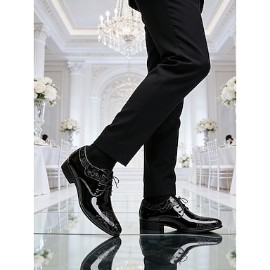 scarpe stringate da uomo in vernice nera con dettagli in rilievo - calzature di alta qualità per abiti da sera, riunioni e matrimoni di lusso
