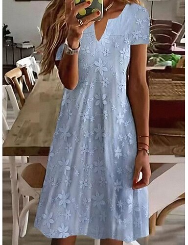 Linea ad A Lunghezza Tè Abiti da Cocktail Elegante Vintage Floreale Manica Corta Colletto a Camicia Festa in giardino Matrimonio Tasca Jacquard con Fiocco/Fiocchi Tasca