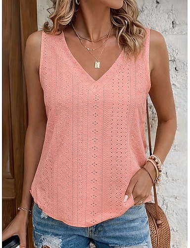 Per donna Blusa con texture Top traforato Maglietta traforata Blusa Traforato Semplice Casual Senza Maniche Scollo a V Top Regolari Casuale Quotidiano Spiaggia Blu Rosa cipria Nero Bianco Giallo