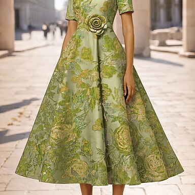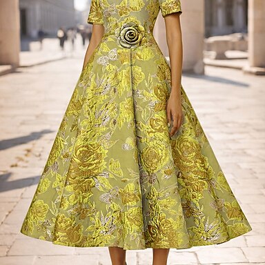 Linea ad A Lunghezza alla caviglia Lunghezza Tè Abito Derby Abiti da Cocktail Elegante Quotidiano Manica 3/4 Scollo a V Derby del Kentucky Jacquard con Tasca