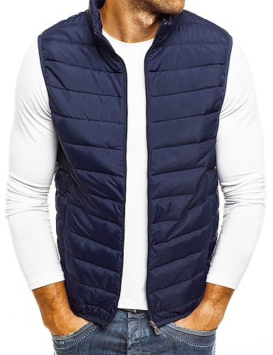 Per uomo Gilet trapuntato Cardigan Uscire Casual Tutte le stagioni Tasca Poliestere Semplice Cerniera Collo alla coreana Vestibilità regolare Nero Rosso Blu marino Grigio Gilet